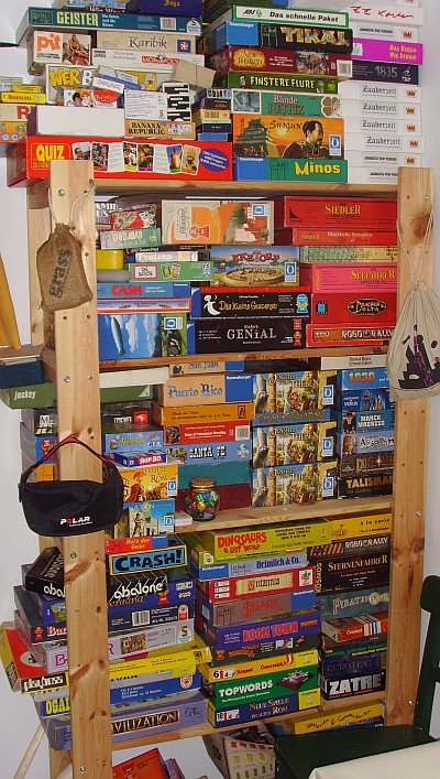 Irgendwann werde ich mir mal vornehmnen meine Lieblingsspiele zu vorzustellen. Bis dahin gibt's hier nur ein Foto meiner Spielesammlung (abzüglich jener Spiele die meine Kinder unbedingt im Kinderzimmer haben wollen).